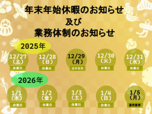 年末年始休暇期間中の業務体制のお知らせ