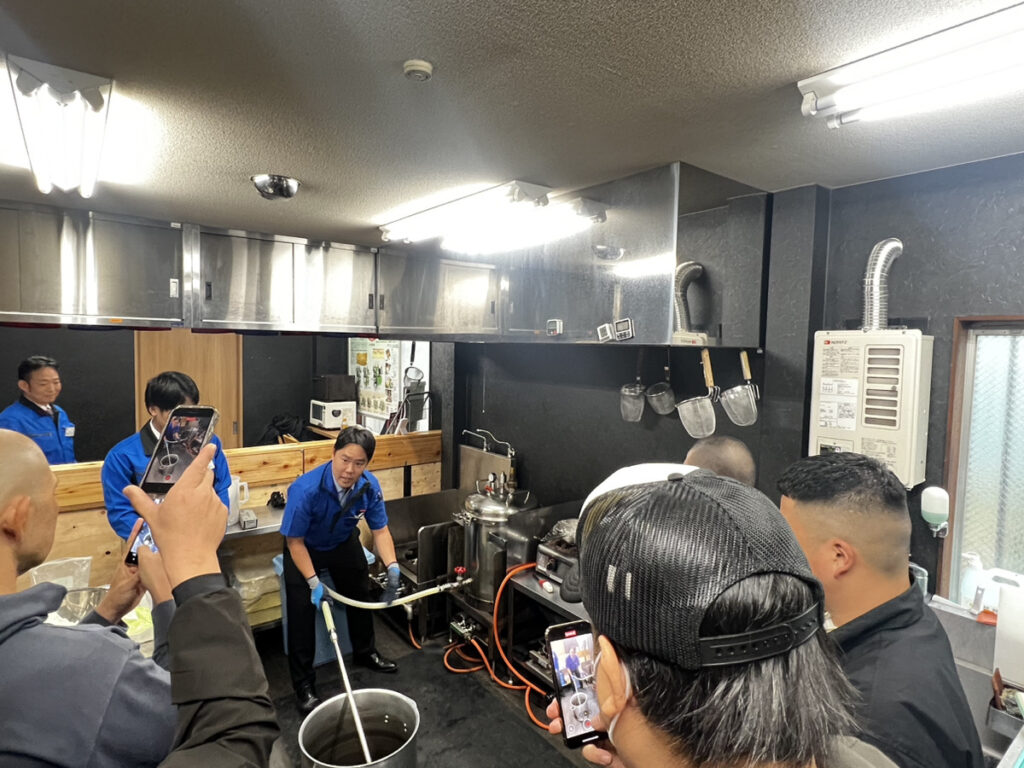 実践的なスープ作りや自家製麺の講習を専門のスタッフ(弊社社員)が行っており、 これからラーメン屋さんをやりたい!と思っている方はもちろん、既存店のお客様にもご好評いただいております。