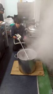実践的なスープ作りや自家製麺の講習を専門のスタッフ(弊社社員)が行っており、 これからラーメン屋さんをやりたい!と思っている方はもちろん、既存店のお客様にもご好評いただいております。